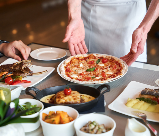 Savor the treasures of the sea just like those on the Mediterranean coastline in Armani/Mediterraneo. We’re celebrating seafood in all its delectable forms from France to the Levant. Imagine the bounty you’ll discover on our iced seafood station, like oysters, razor clams, tiger prawns, lobster tails, blue crab and more. You won’t need a treasure map to find our delectable hot mains like surf and turf, creamy cod, stuffed squid, and seafood paella, not to mention our grilled daily catches of which we have 5 different varieties.