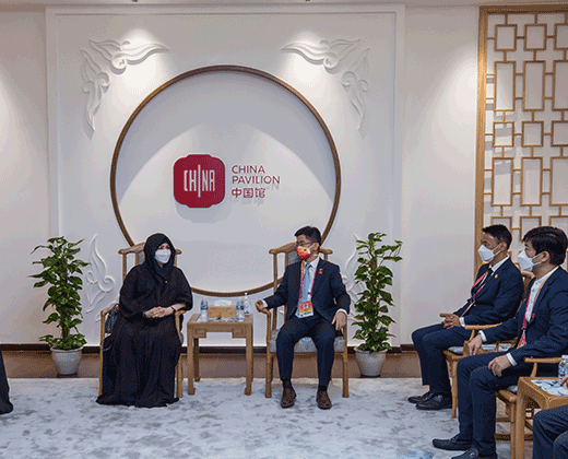 At the Chinese Pavilion, Her Highness met with Li Xuhang, Consul General of China, Zhang Shen Feng, Commissioner General, and a group of Chinese officials, where she discussed collaborations opportunities in the fields of culture, design and creativity. During her tour, she was also briefed about China’s achievements in the fields of information technology, modern transportation, artificial intelligence and various technological innovations.