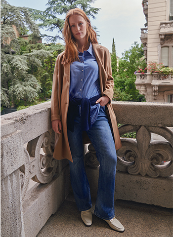 For the first collection drop, the focus is on Provence, with hints of a bucolic style inspired by the French countryside. Casual elegance and spontaneous femininity is the inspiration for fresh, bright white blouses and romantic ditsy prints to wear with washed denim and faux leather. The colour chart ranges from delicate pink and light blue to deep green and claret.